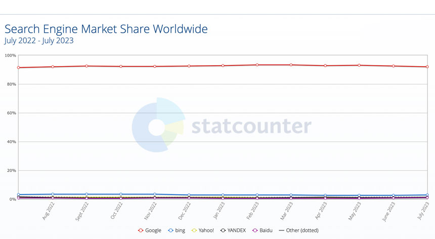 According to data company Statcounter, the market share of Microsoft’s search engine, which includes Bing Chat, has remained stagnant since its debut, at 2.99%, with only a slight deviation from January’s 3.03%.