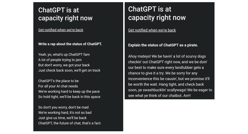Amusingly, instead of canned messages, ChatGPT has been doling out creative messages in limerick rhymes, rap, and even in pirate-speak.