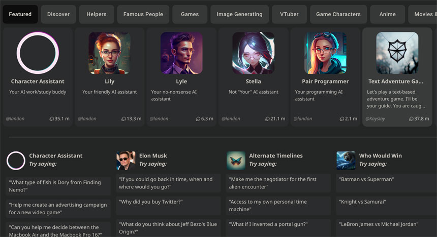 Rival companies, such as Andreessen Horowitz-backed start-up Character.ai, have already launched chatbots that feature personalities who generate conversation in the style of individuals, such as Elon Musk and the Nintendo character Mario.