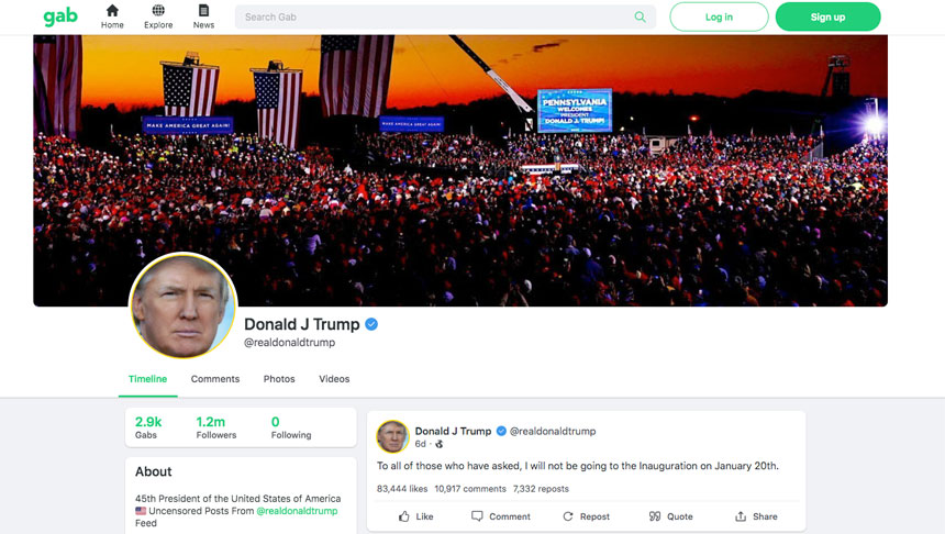 Gab.com—one of the alternative social media sites, along with MeWe and Rumble, is attracting hundreds of thousands of Trump supporters. This week, started to face increased scrutiny from pro-Biden organizations.