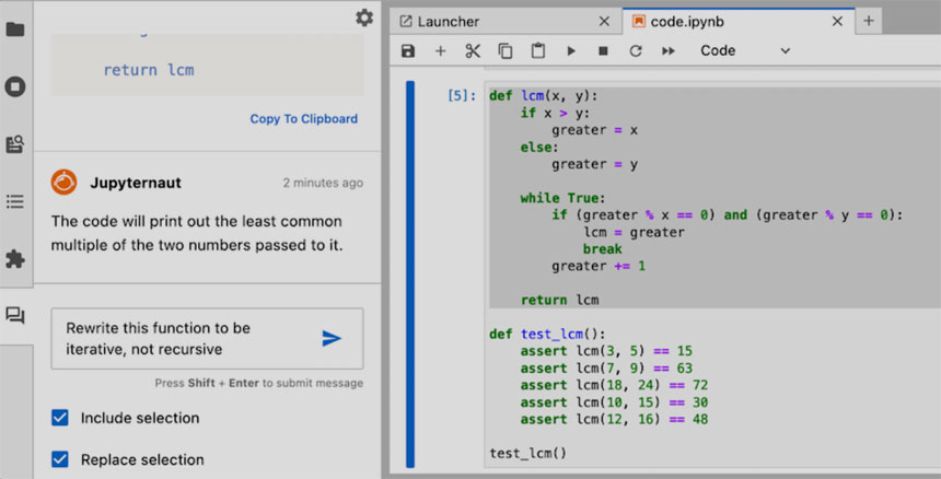 Jupyter AI also includes a conversational assistant for developers.