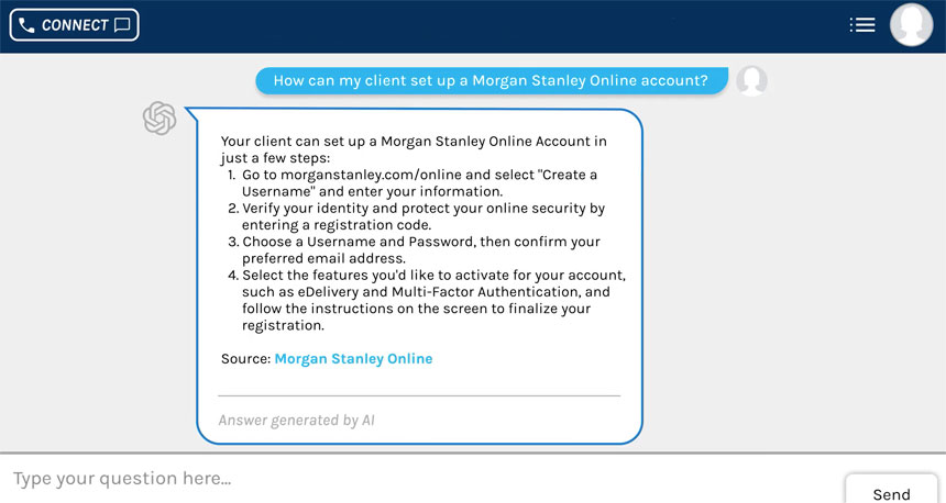 “The model effectively unlocks the cumulative knowledge of Morgan Stanley Wealth Management,” says Jeff McMillan, Head of Analytics, Data & Innovation, whose team is leading the initiative.