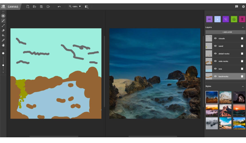 “The tool isn’t just stitching together pieces of other images, or cutting and pasting textures, but creating brand new images, just like an artist would,” explained Stanley Tack, from NVIDIA.