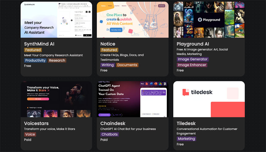 Supertools.therundown.ai includes AI chatbots classified by area as well as a top-pick ranking.