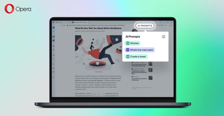 Opera’s AI Prompts allow users to generate prompts by highlighting text on a website or typing it in.