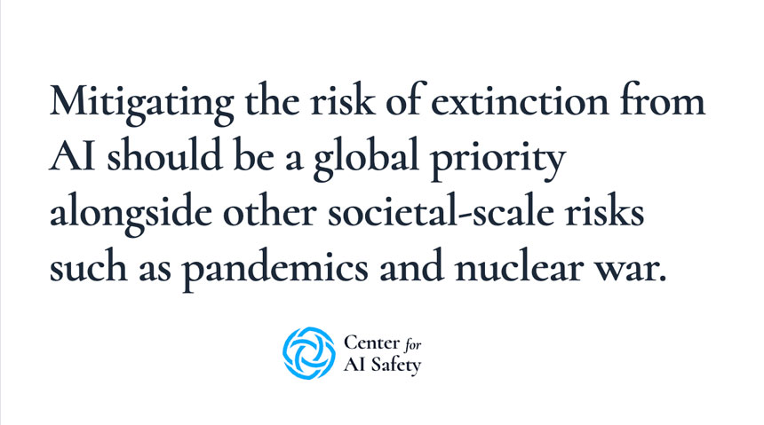The statement, hosted on the website of a San Francisco-based, privately-funded not-for-profit called the Center for AI Safety (CAIS), states: