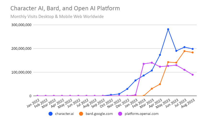 Other AI providers, such as Perplexity.ai, Midjourney, Anthropic, and Bard’s, also attract young population demographics
