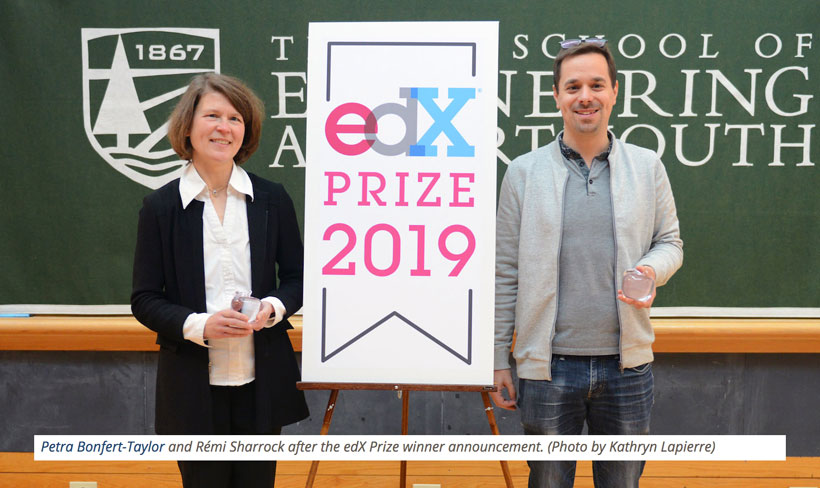 Dartmouth College Professor Petra Bonfert-Taylor and Institut Mines-Télécom (IMT) of France Professor Rémi Sharrock won the 2019 edX Prize for Exceptional Contributions in Online Teaching and Learning. The announcement was done during a virtual Town Hall, which replaced the annual edX Global Forum (canceled because of the uprising in Hong Kong).